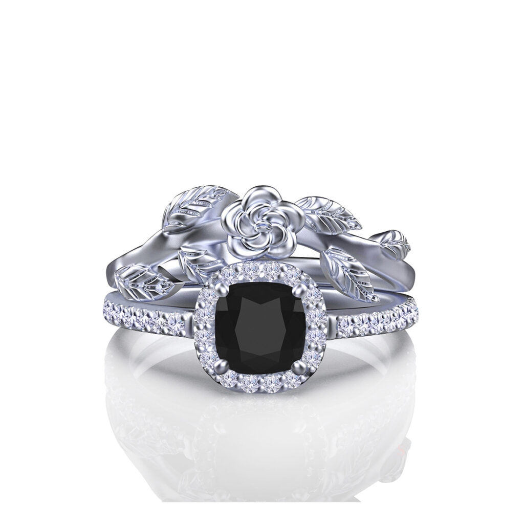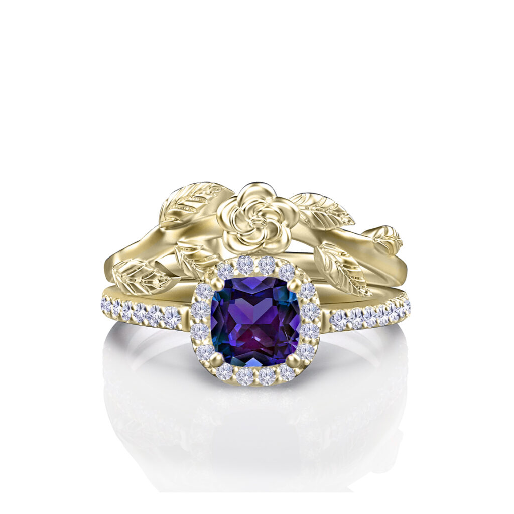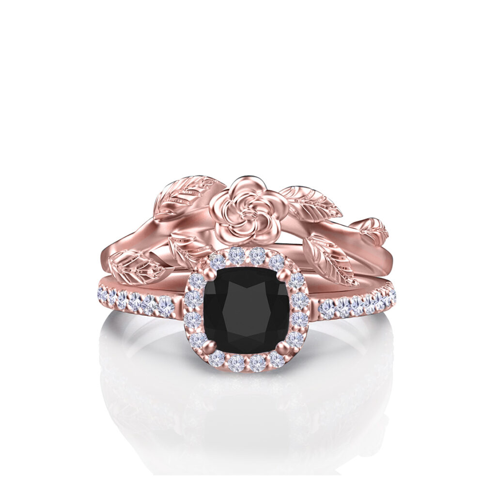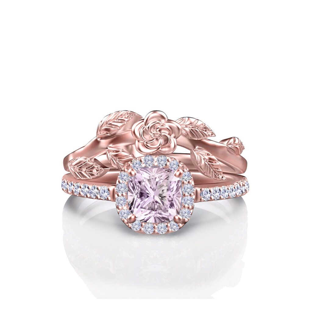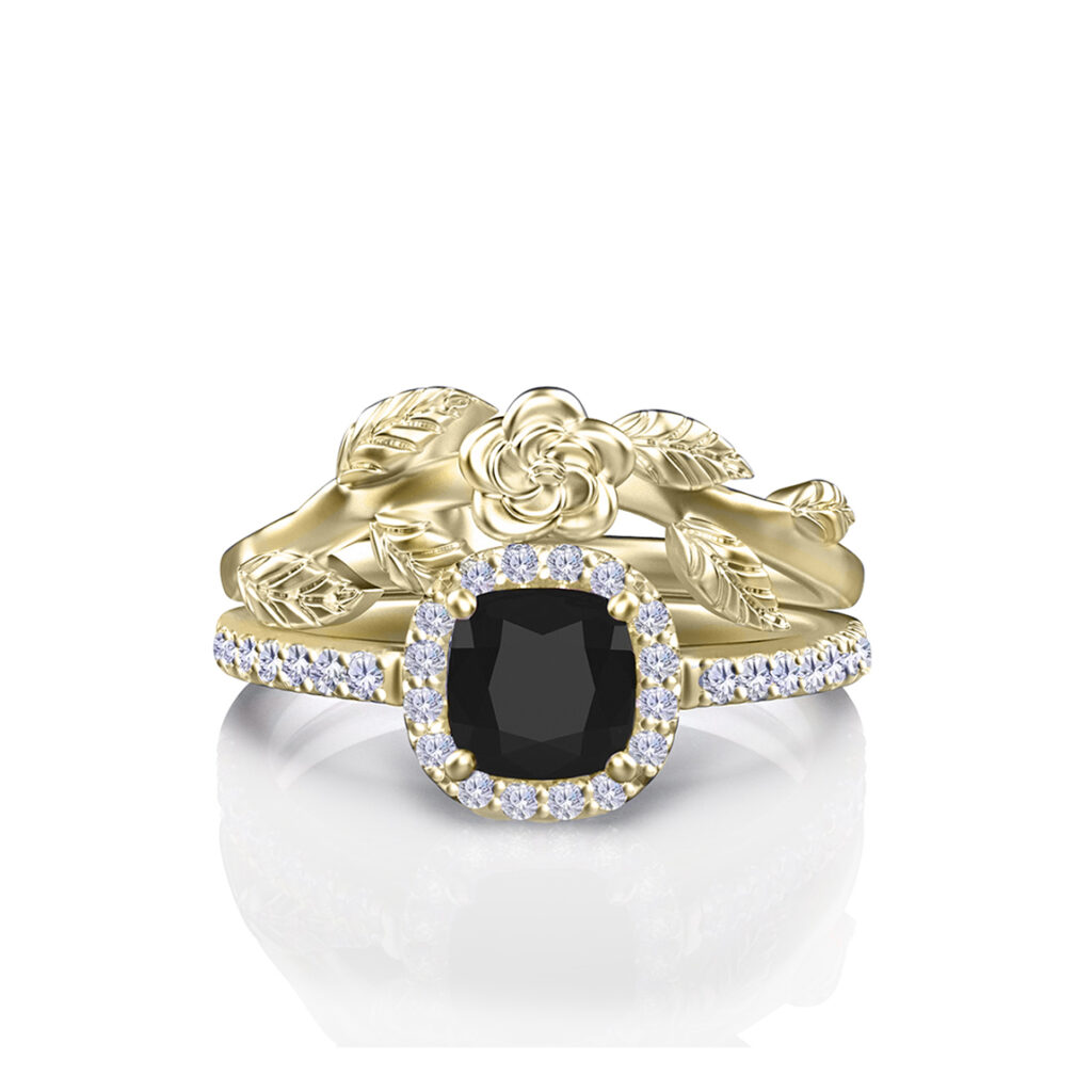 Together, they form a complete story making the perfect floral engagement ring set. Available in your choice of metal and stones.