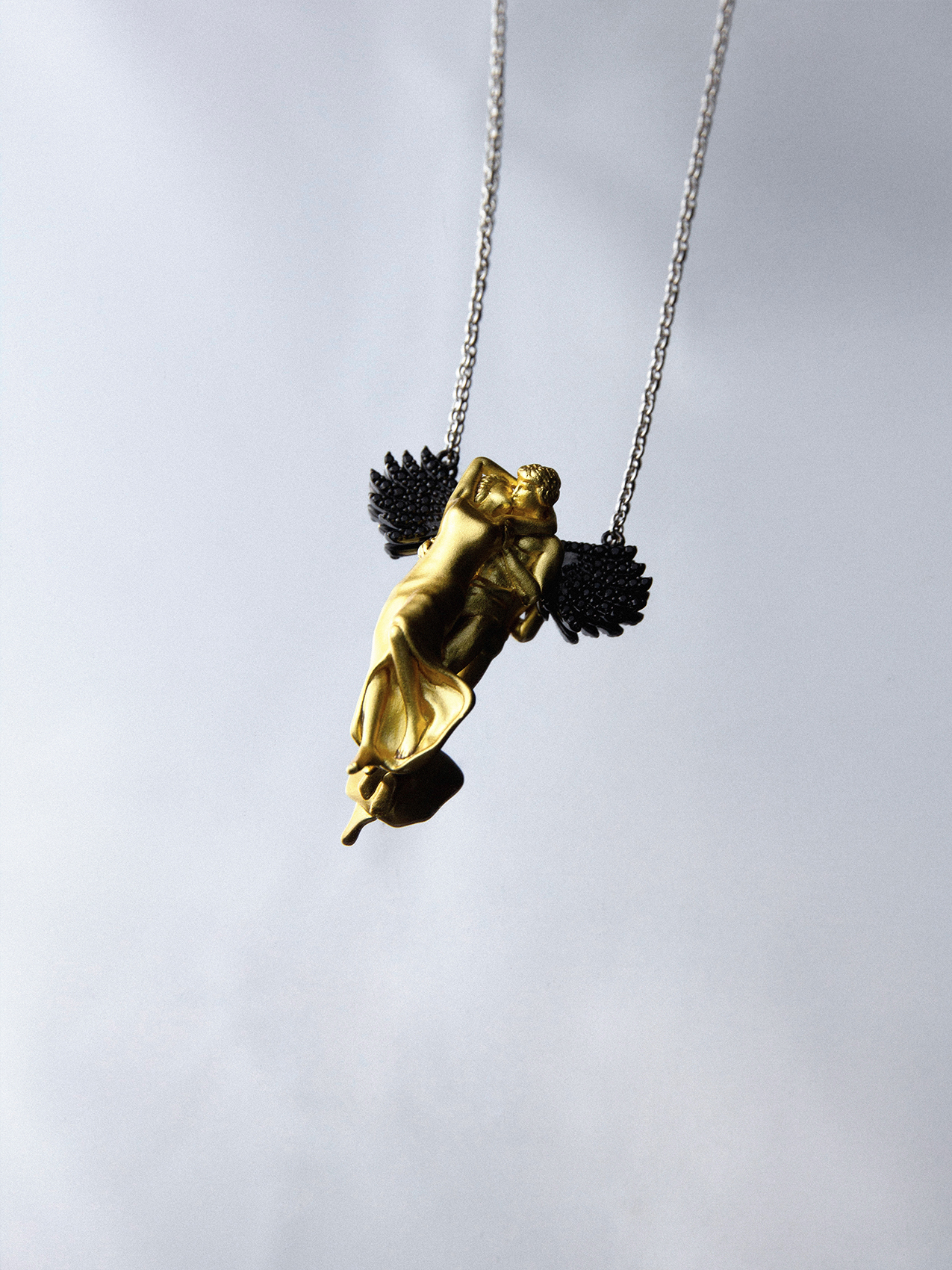 Sterling silver with yellow gold accent and black rhodium wings
