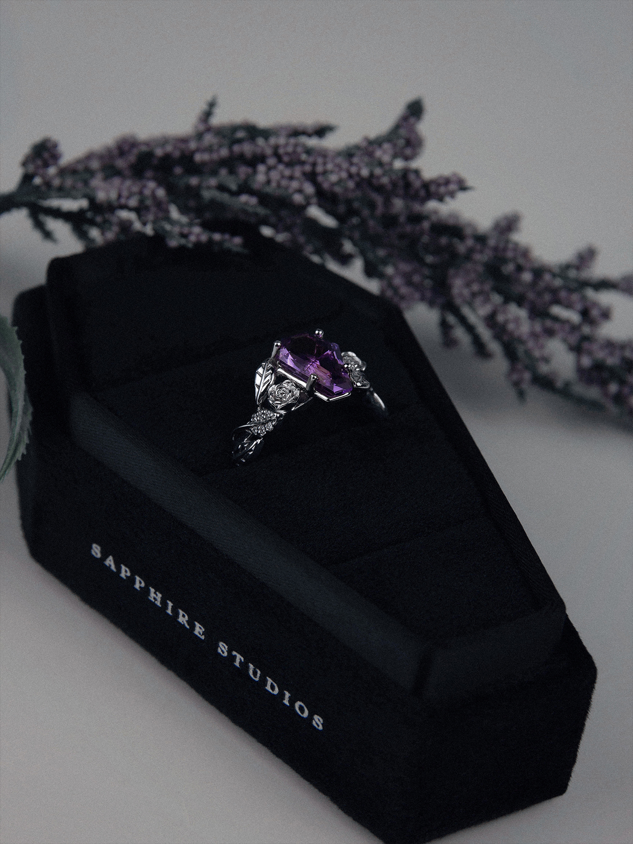 I made multiple orders for Sapphire Studio Designs and and the one that I got first is absolutely stunning. I ordered this ring with an alexandrite stone and I absolutely adore it. The design of the ring is detailed and shows fantastic craftsmanship. The coffin cut is beautiful and unique (I say that because when I looked up coffin cut jewelry theirs is the best cut by far). Even my mom, who is not a fan of anything gothic, thought the cut/ring was lovely. Any emails I sent in regards to my order received a timely And polite response. Any jewelry lover looking to treat themselves OR Anyone looking for the perfect wedding/engagement ring should look into this company (Especially since they do custom designs)! It is a ring I will wear often and I look forward to my other orders!