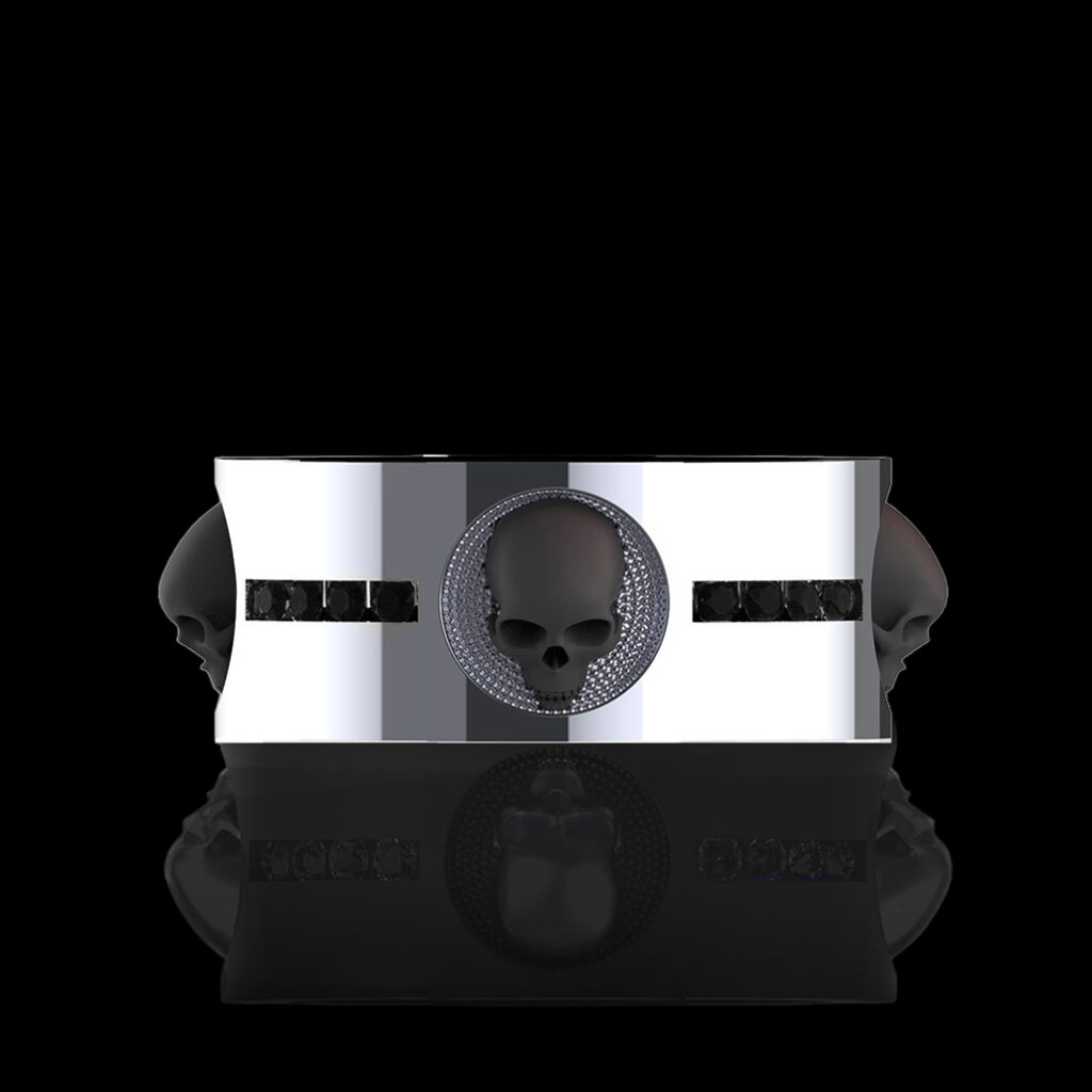 Sterling silver, 10k, 14k, 18k gold with or without black rhodium skulls