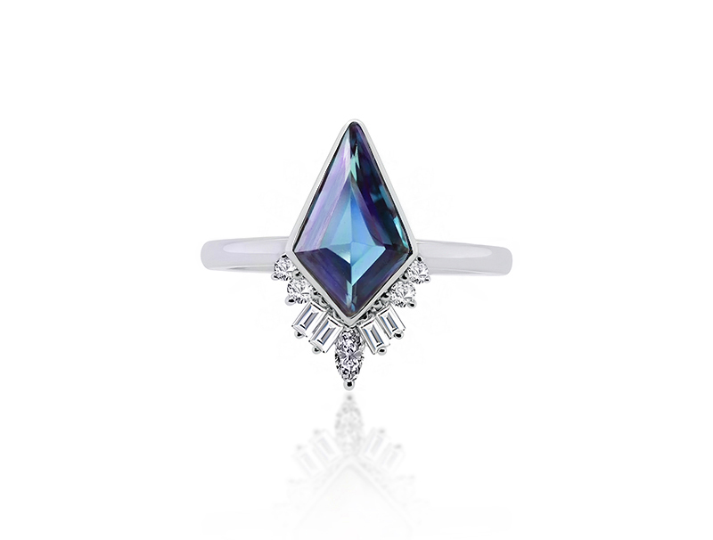 A flawless silicon carbide stone. With its exceptional hardness, brilliance, and fire comparable to natural diamonds, moissanite represents an economically viable choice that allows you to acquire a stunning, durable gemstone without the high price tag often associated with traditional diamonds. Available in several colour variations.