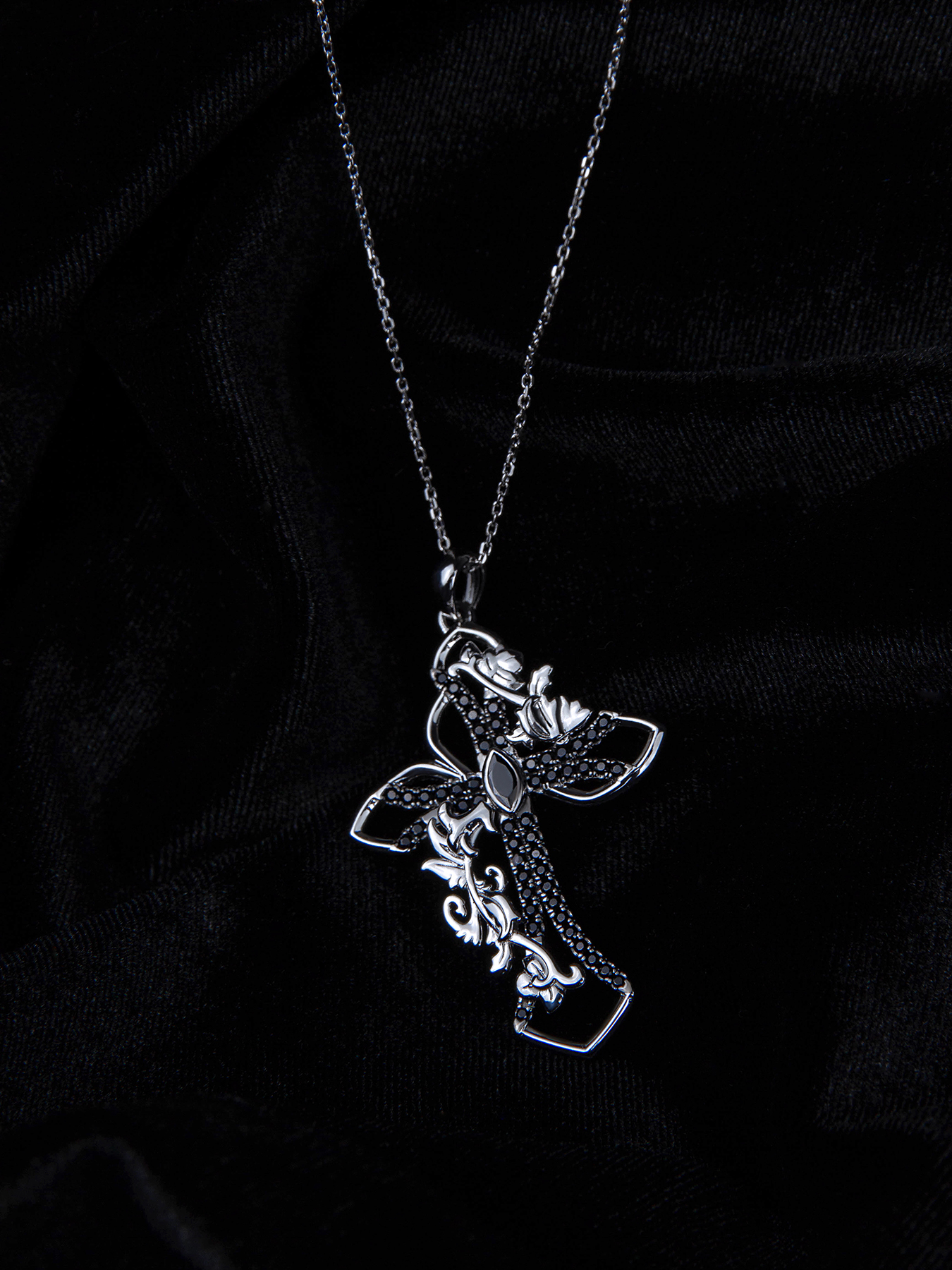 Sterling silver with black rhodium on chain