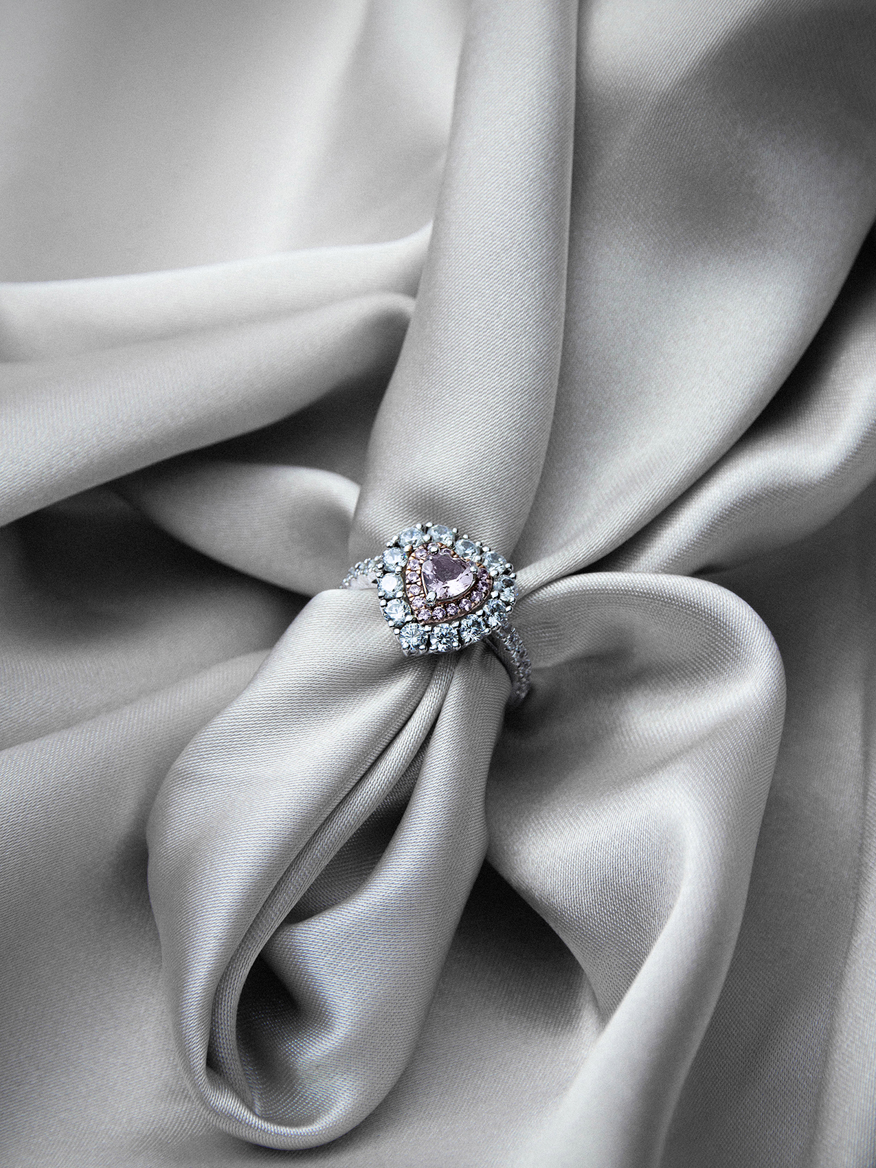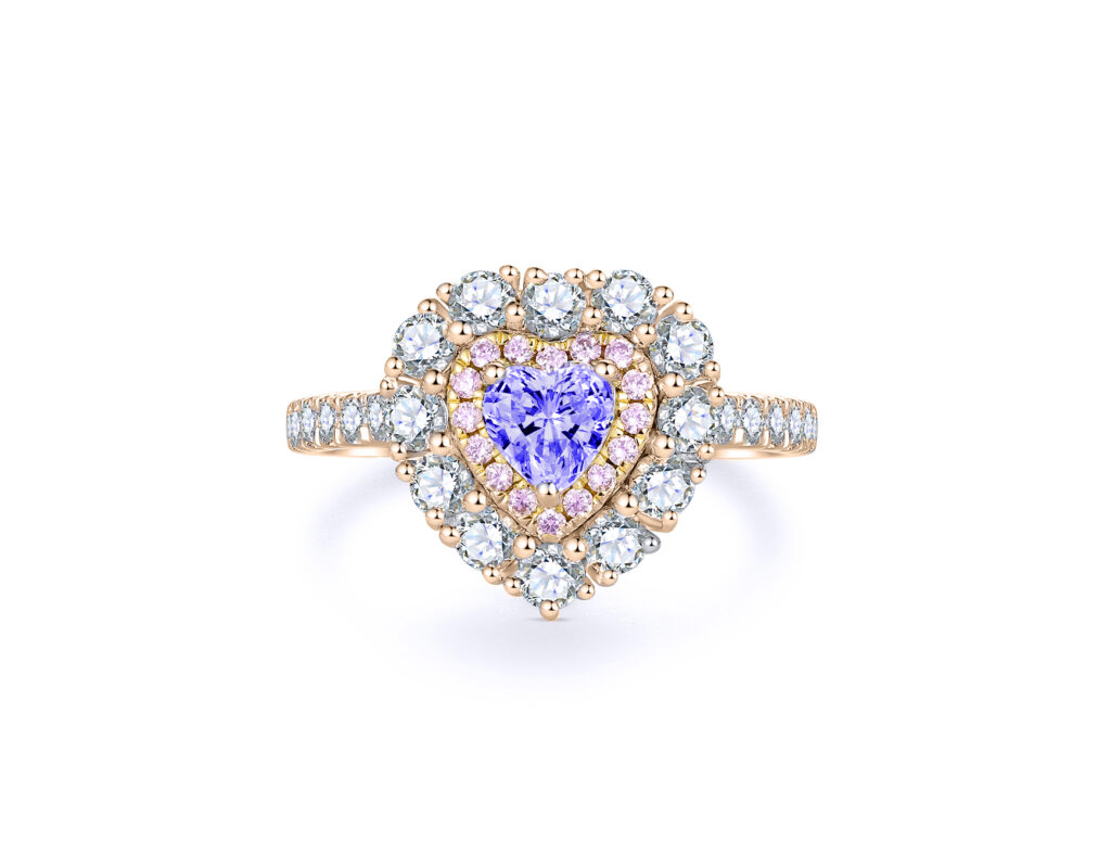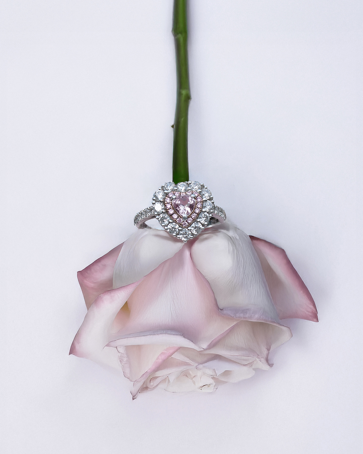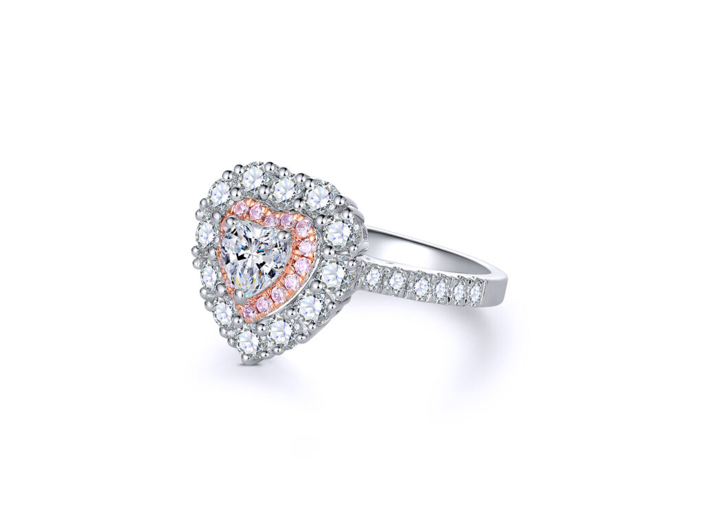 Natural pink sapphire and natural white diamonds VS-SI2, F-G